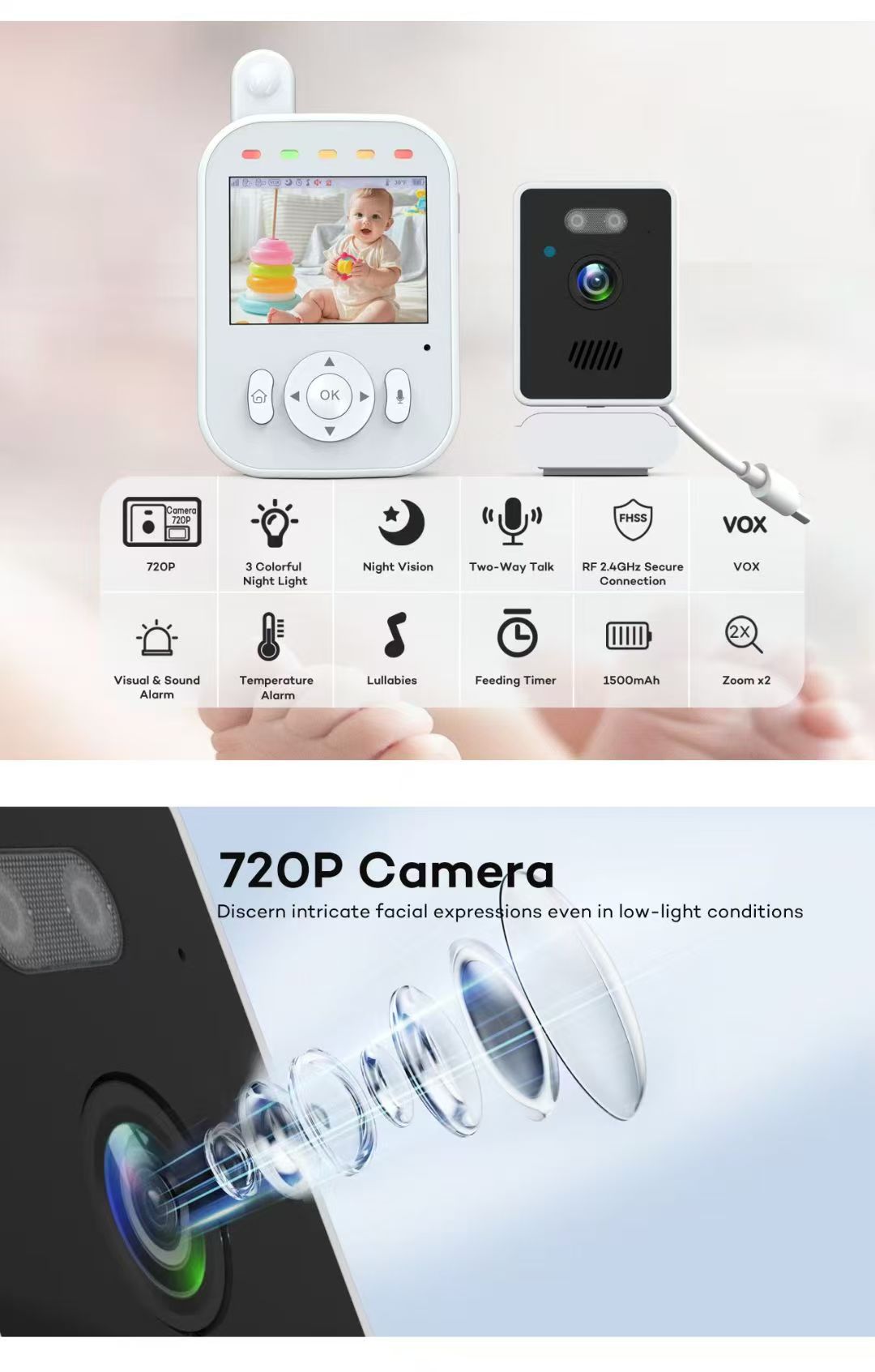 PIX-LINK Baby Monitor with Camera and Audio 2.8″ Video Baby Monitor Secure Long Transmission Range Night Vision 720P Camera
