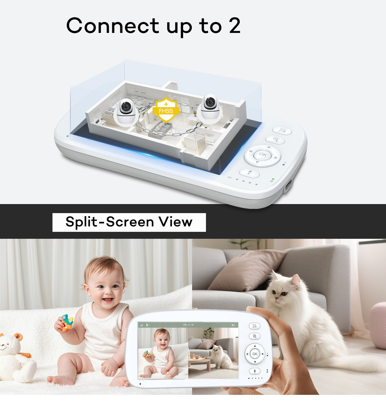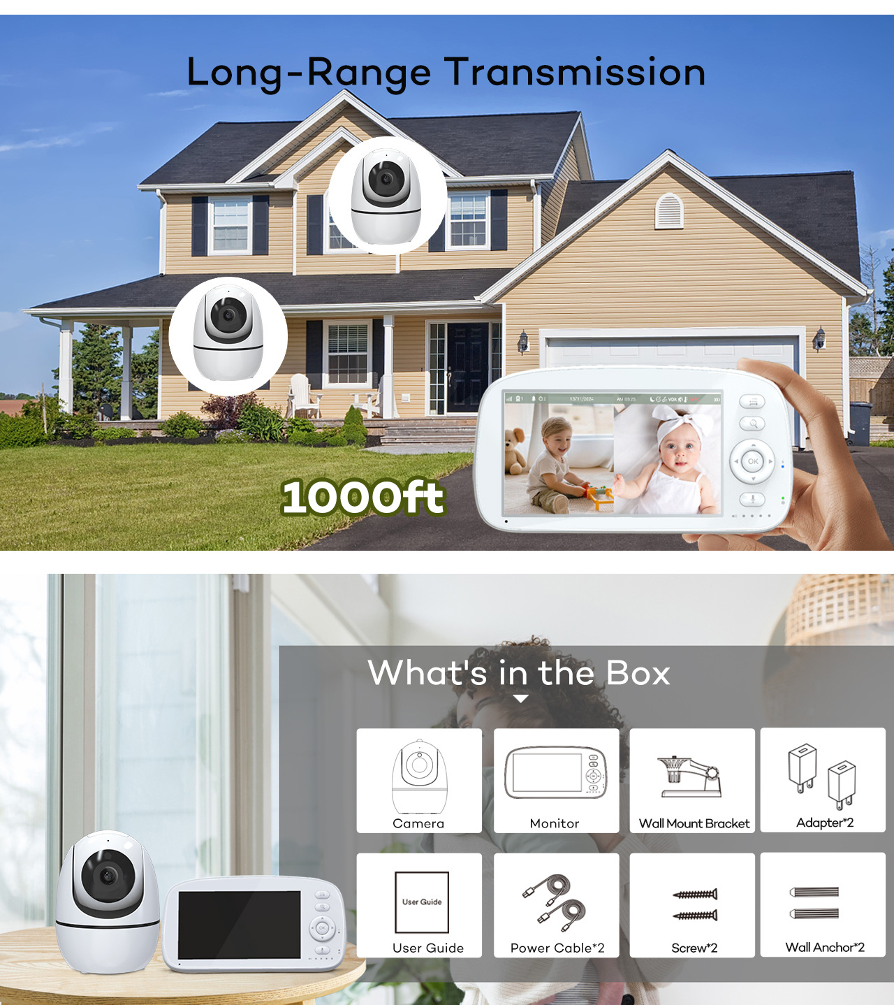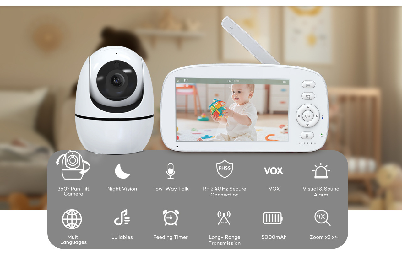 PIX-LINK 5 Inch Baby Monitor Camera Audio 720P High-definition Resolution Two Way Talking Wireless Security Baby Pet Camera