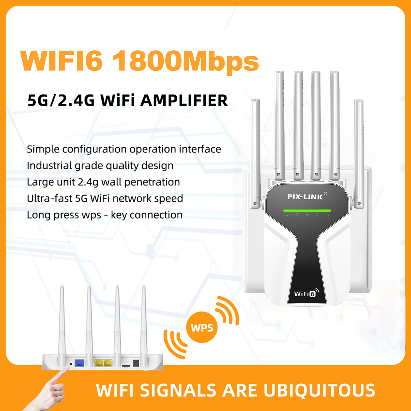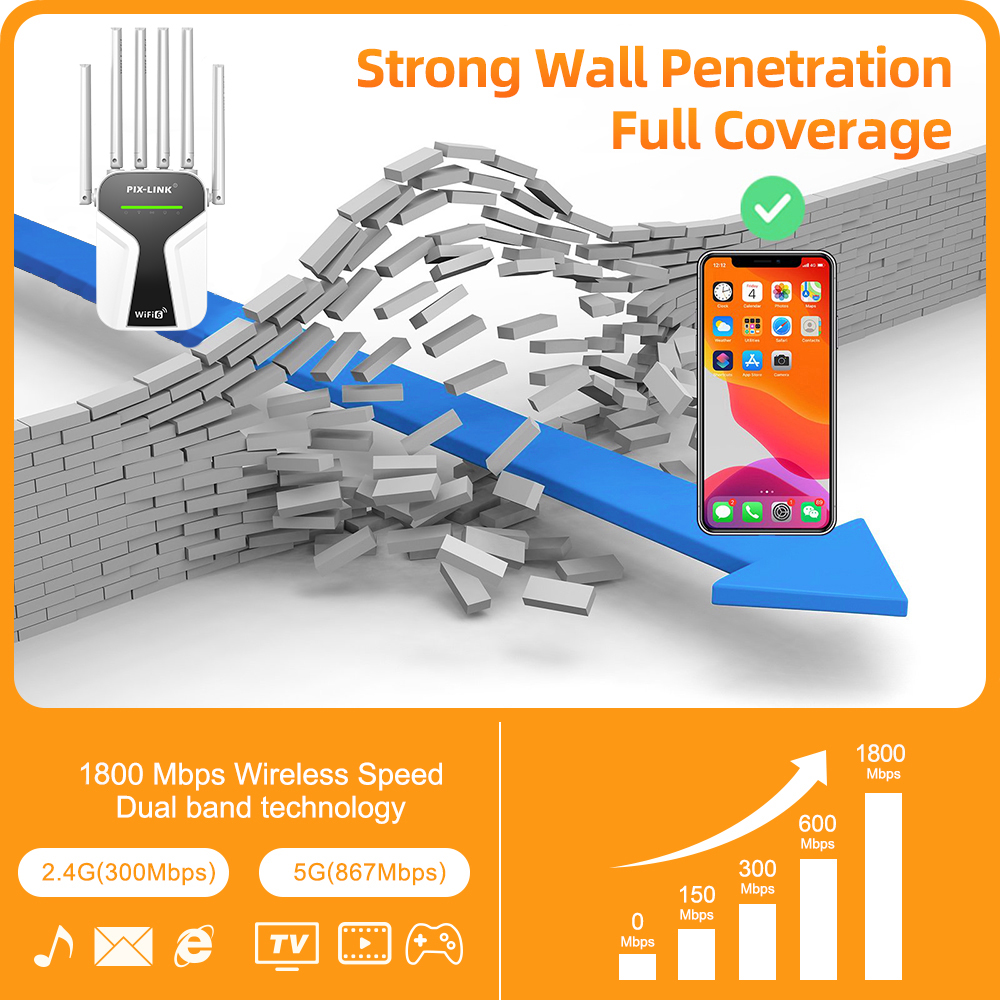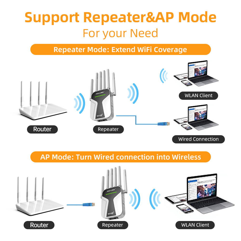 PIX-LINK AX28 Dual-Band Wi-Fi 6 1800W Range Extender & Access Point Factory Wholesale