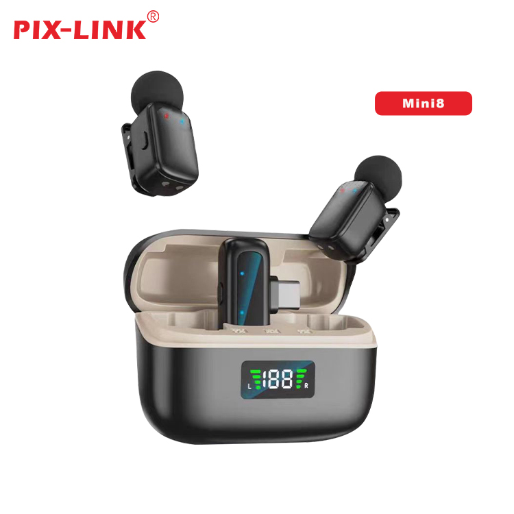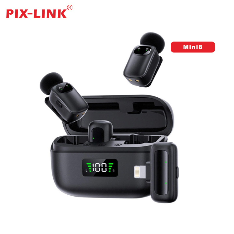 PIX-LINK Wholesale Mini8 Type c/ Lighting Wireless Lavalier Microphone With Charging Case