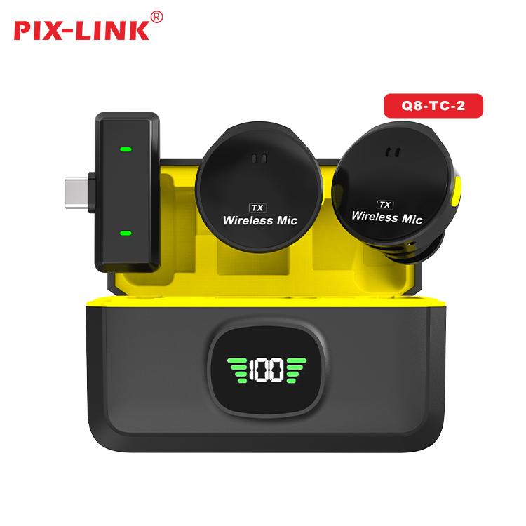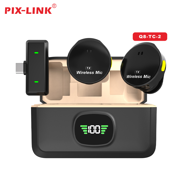 PIX-LINK Professional Wireless Lavalier Microphone Magnetic button Collar Clip Mic with Charging Case for Android/iPhone