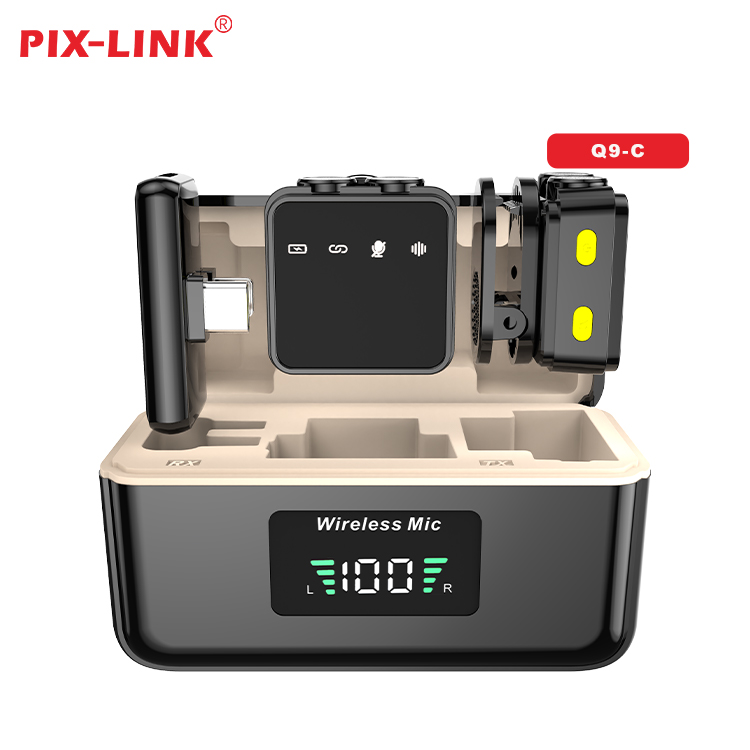 PIX-LINK Professional 2in1 Type-c/Lighting Wireless Lavalier Microphonewith Charge Case