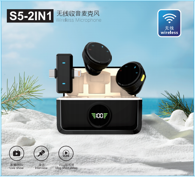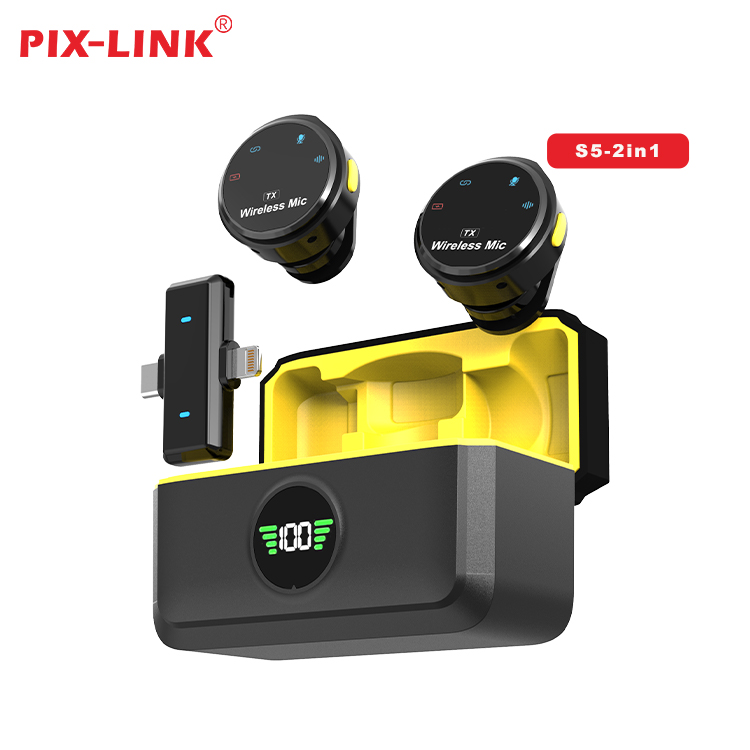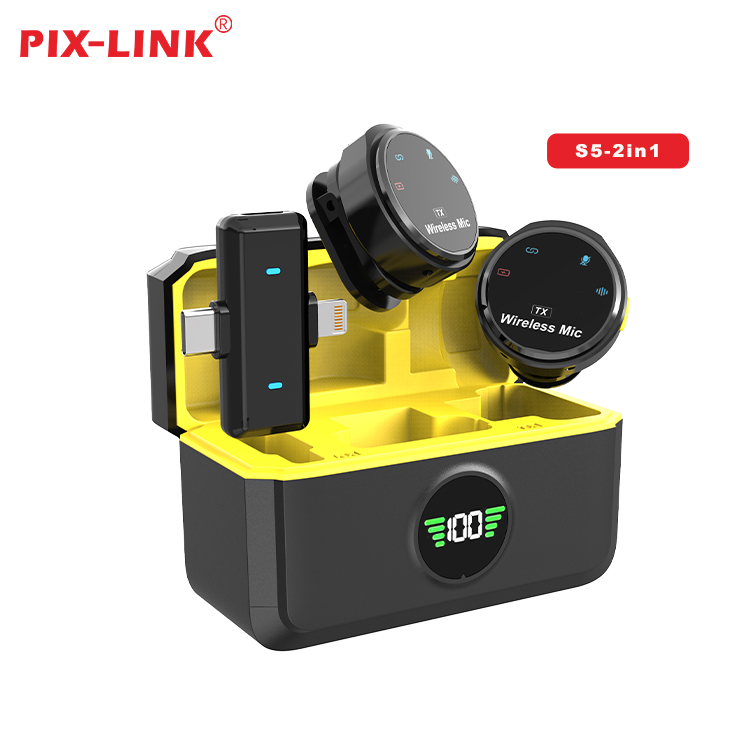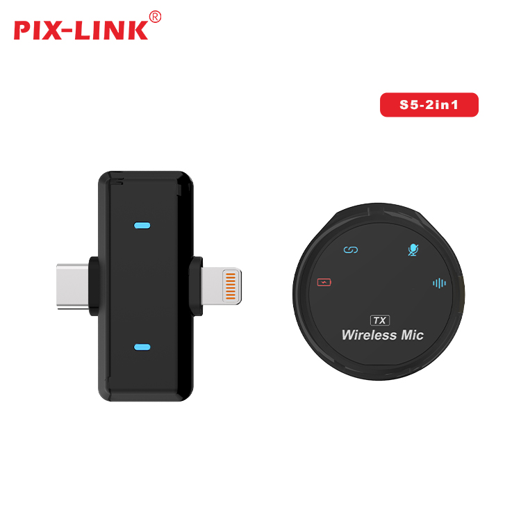 PIX-LINK 2 in 1 New S5 Wireless Lapel Microphone Interface Lavalier Mic Noise Cancel for YouTube TikTok Live Streaming Podcast