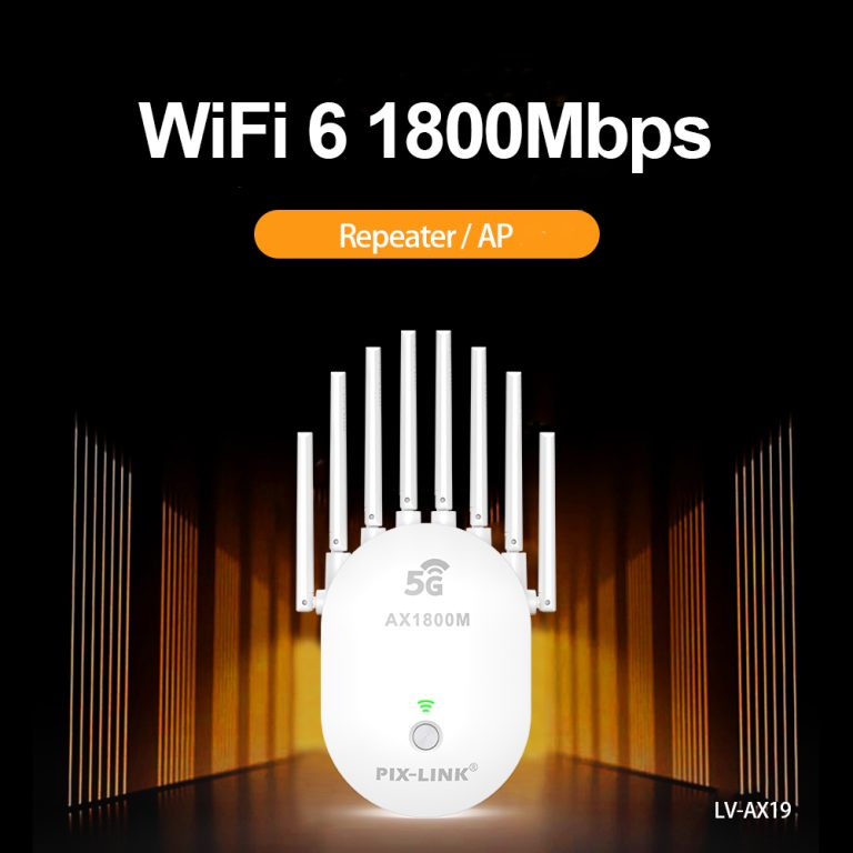 Upgrade your home network to the next generation with the PIXLINK AX19 WiFi 6 Repeater! This powerful device is designed to eliminate WiFi dead zones and bring blazing-fast, stable internet to every corner of your home or office. Featuring 8 high-gain antennas, advanced WiFi 6 technology, and a dual-band speed of up to 1800Mbps, it’s the ultimate solution for seamless 4K streaming, online gaming, and video conferencing. With multiple operation modes and an easy setup, it’s the perfect extension for any existing router.