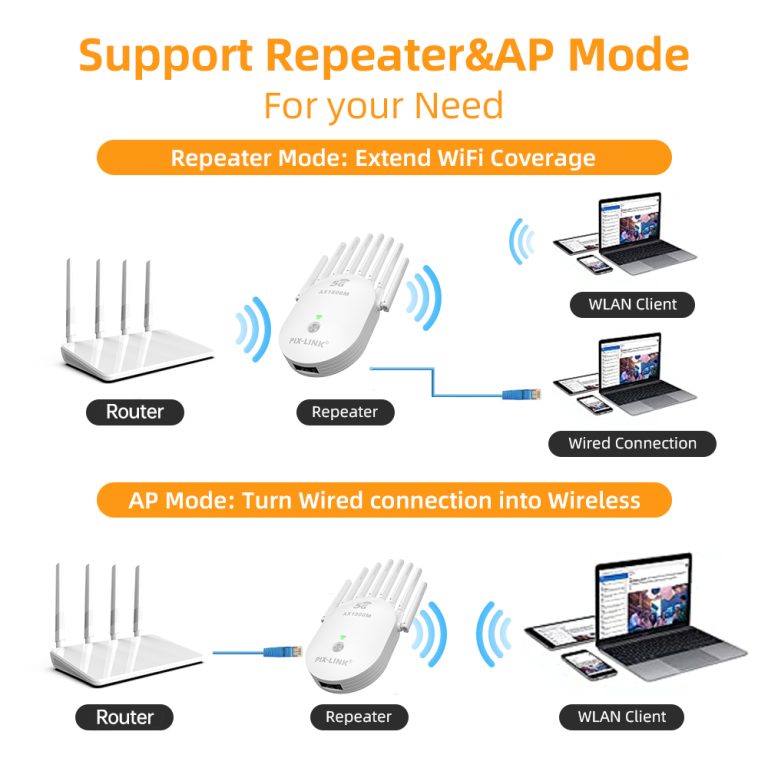 - All-in-One Operation Modes: Works not only as a WiFi Repeater/Extender but also as a Wireless Access Point (via the Ethernet port) and a Client Mode for wired devices.